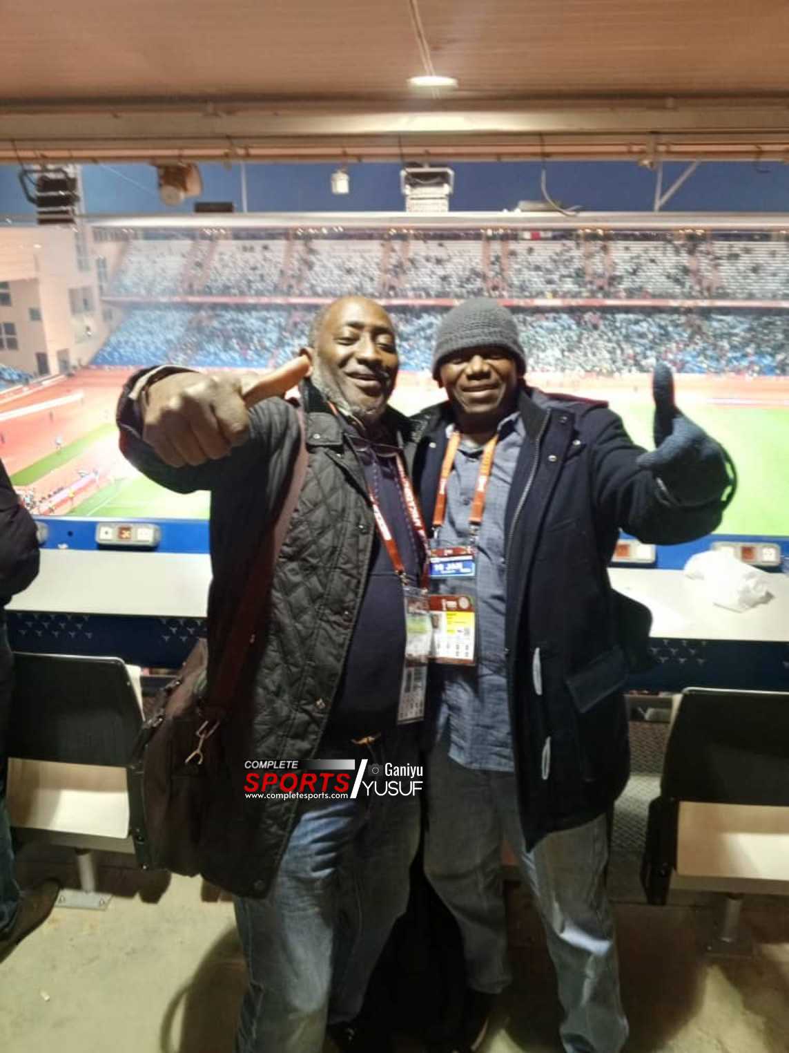 …..With my colleague, Deji Omotoyinbo, after the win against Algeria. I had warned him not to come and jinx the Super Eagles who had been winning before his arrival. Luckily for him, the Eagles won again.
