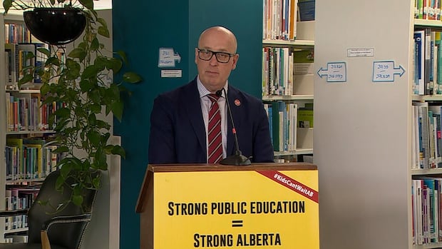 Alberta Education and Childcare Minister Demetrios Nicolaides says the government will make new investments to try and improve student learning conditions highlighted during the October 2025 teachers’ strike. (Janet French/CBC)