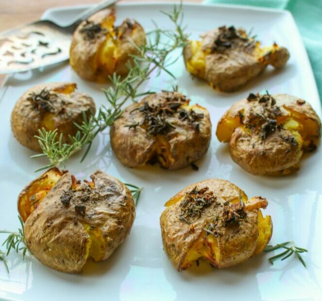 Smashed Air Fryer Potatoes with Rosemary – Sharon Palmer, The Plant Powered Dietitian