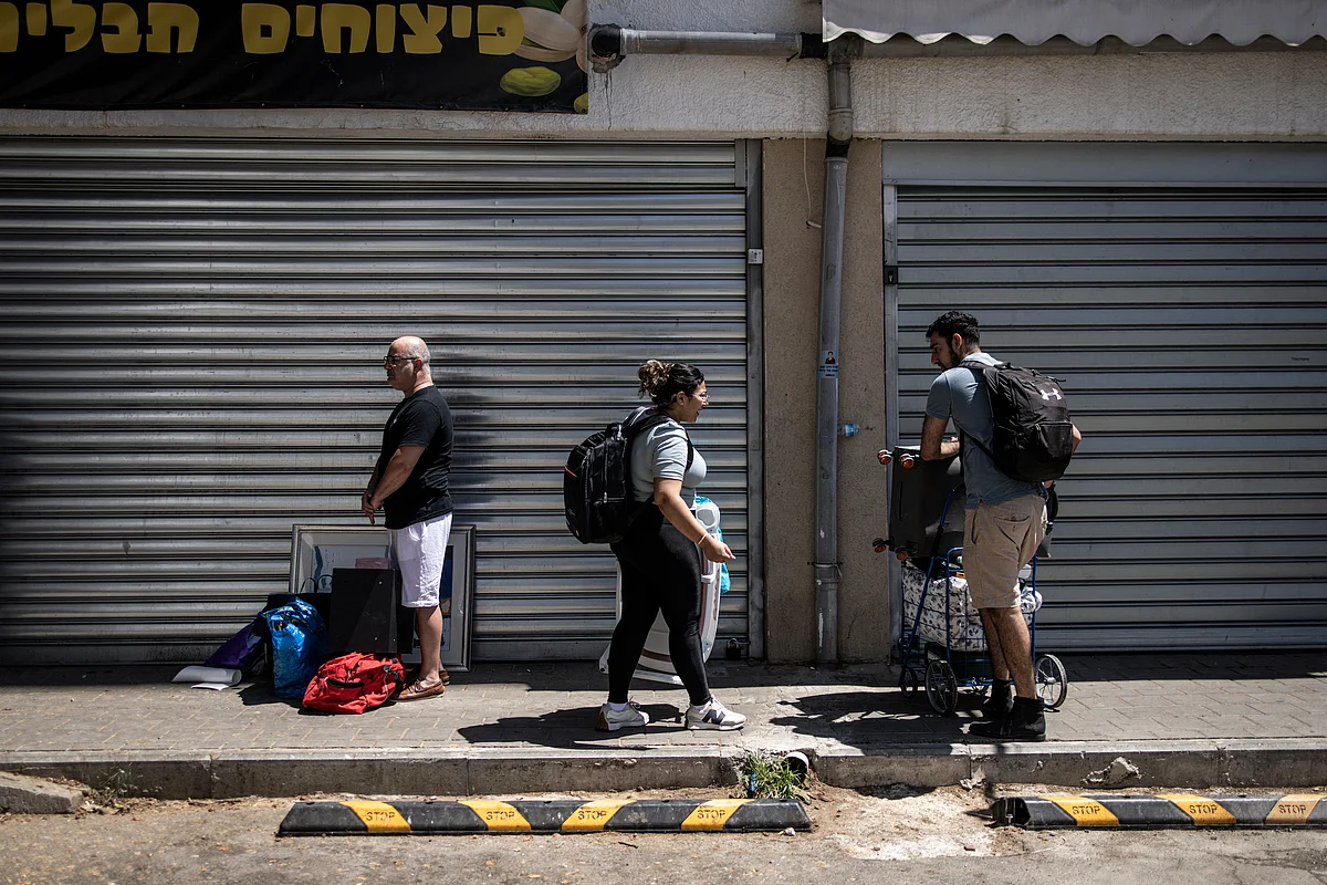 In Holon, people were seen walking with their belongings as they evacuated their damaged homes, trying to salvage what little they could.