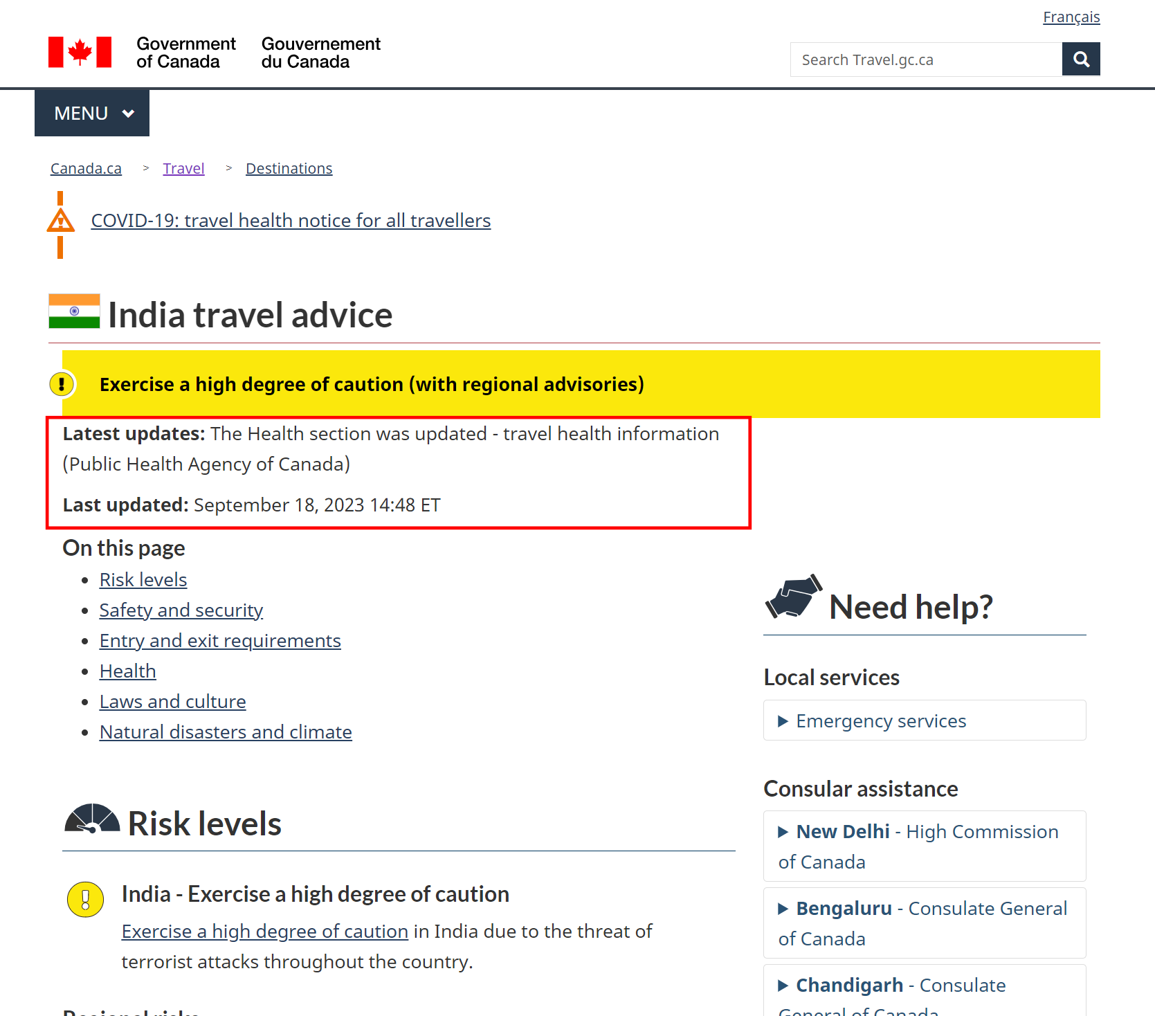The reader must note that the government website that carries the travel advisory has clearly mentioned that the latest update on September 18 only concerned the Health section. This implies that the ‘Risk Levels’ section has not been changed recently.