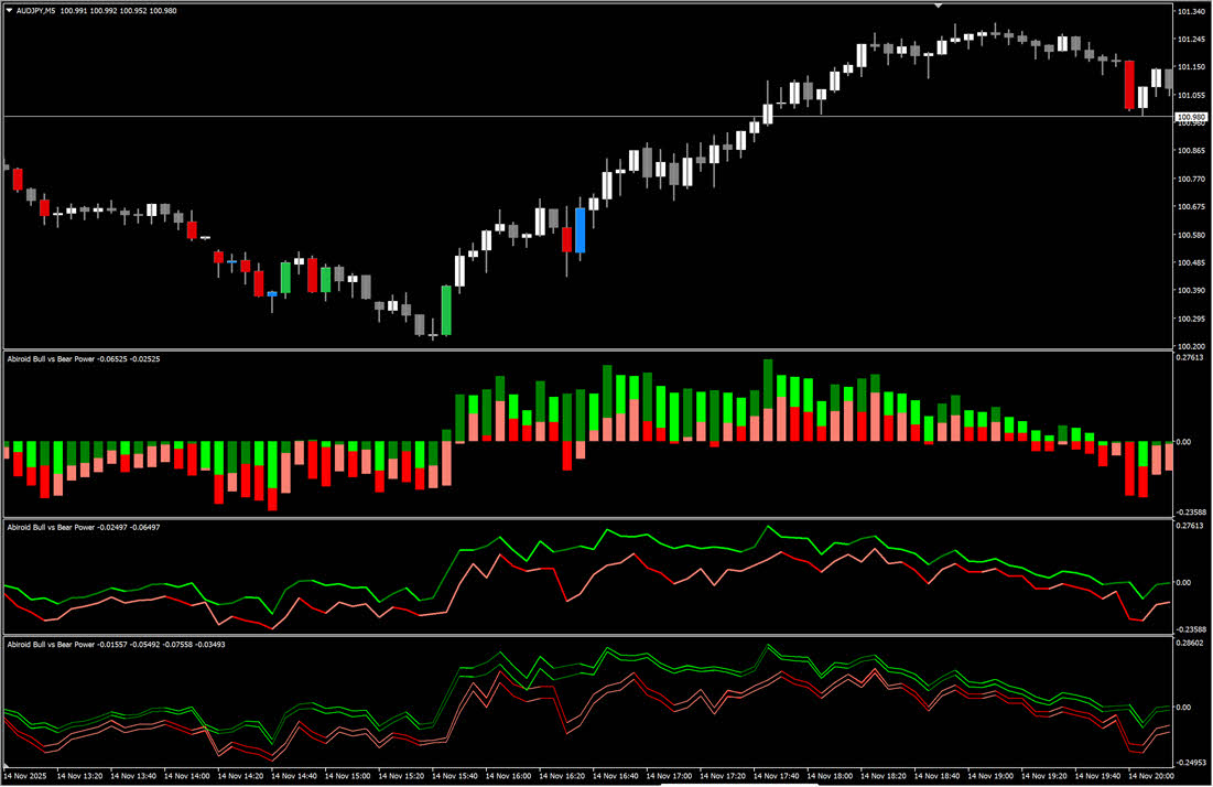 • Bear Color Falling: Light red for falling Bear Power (sellers weakening)