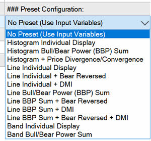 • Bull and Bear Power Visualization: Histograms or Lines or Bands