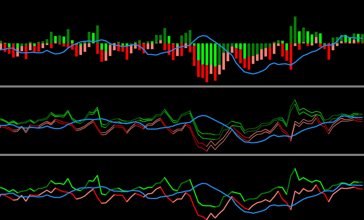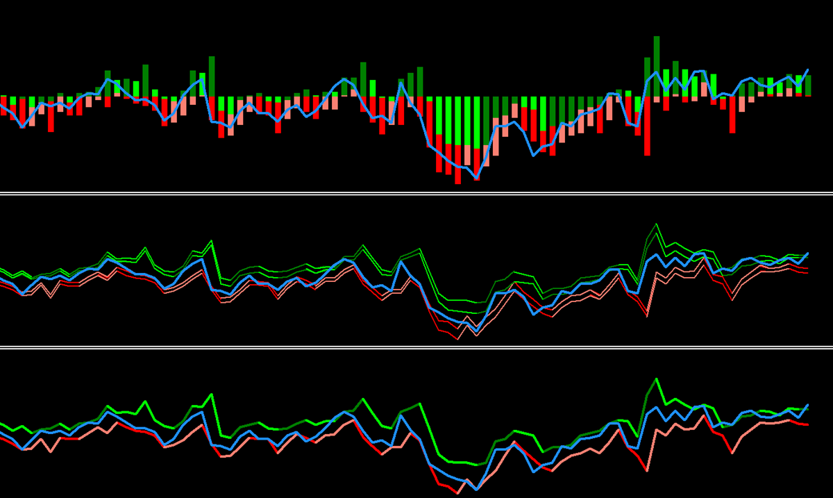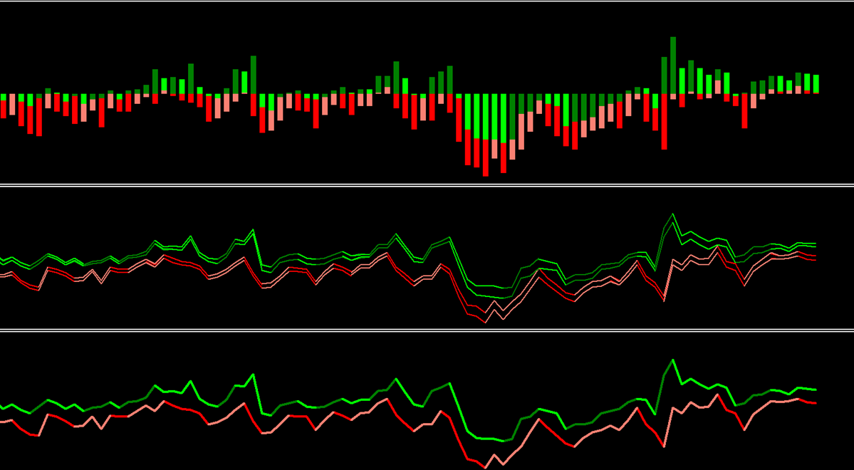 • Histogram: Easiest to see individual bar strength; best for entry/exit timing