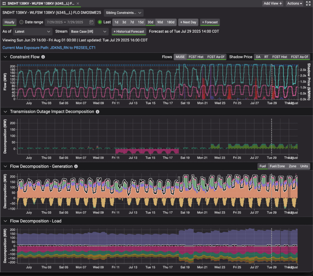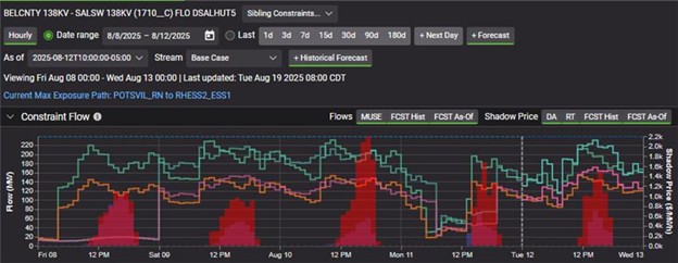 This physics-driven approach enabled our forecast to accurately predict the flow shifts and price impacts of the 1715_B_LN outage on the Bell County-Sallisaw constraint.