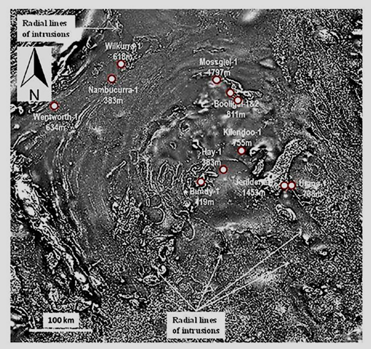 Acknowledgment: I’d like to thank my colleague Tony Yeates, who originated the view of the Deniliquin multi-ring structure as an impact structure – and who was instrumental to this work.The Conversation