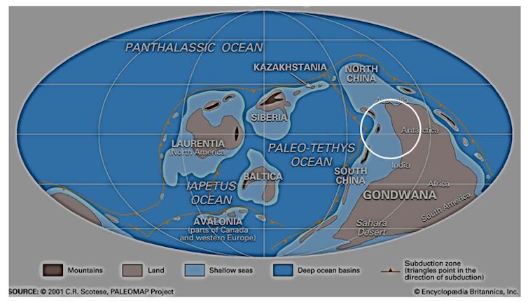 The Deniliquin structure was likely located on the eastern part of the Gondwana continent, prior to it splitting off into several continents (including the Australian continent) much later.