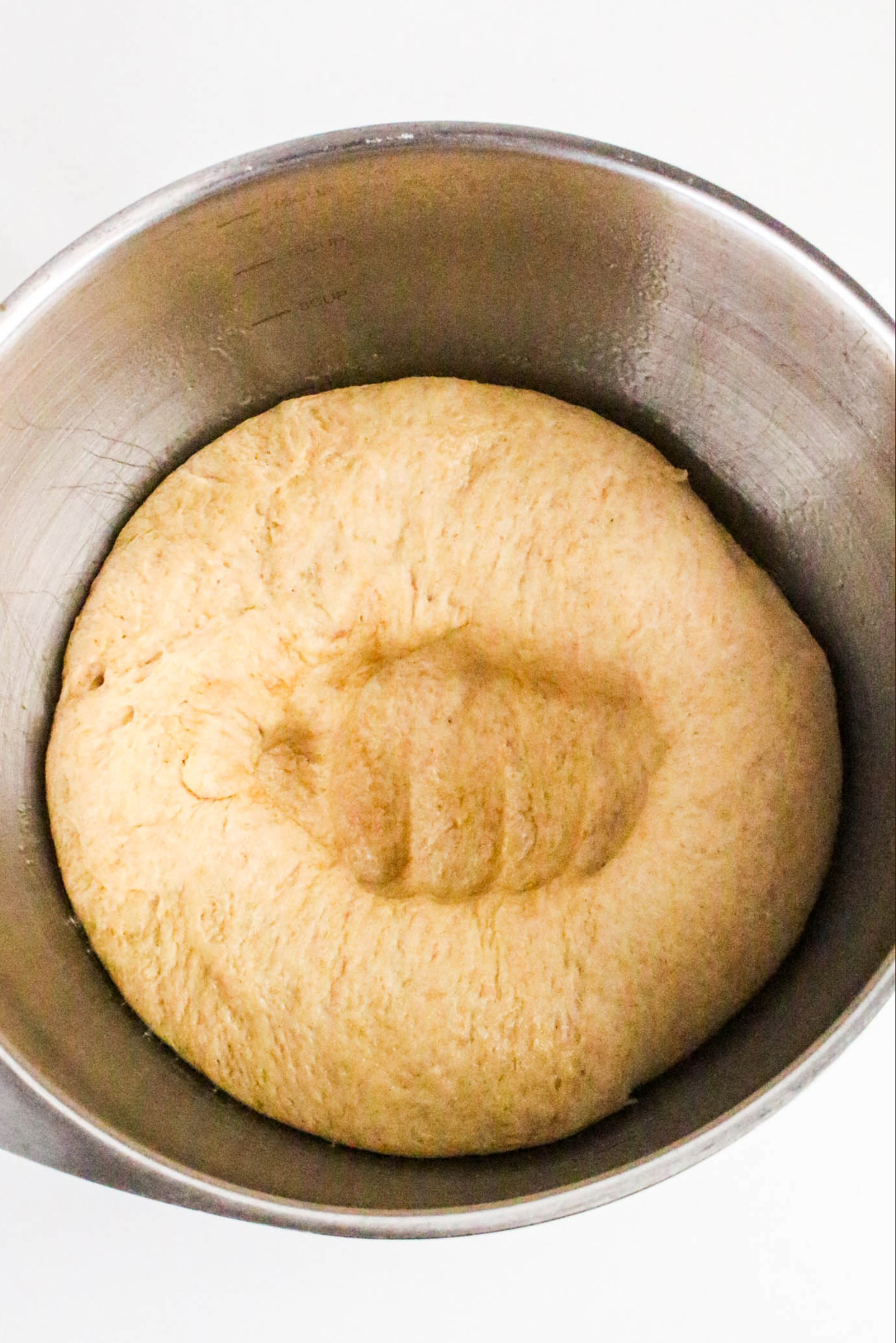 - Mix in the whole wheat flour. Slowly add the all-purpose flour until the dough comes together. Knead on a floured surface for 6–8 minutes until smooth or use the dough hook to the stand mixer.
