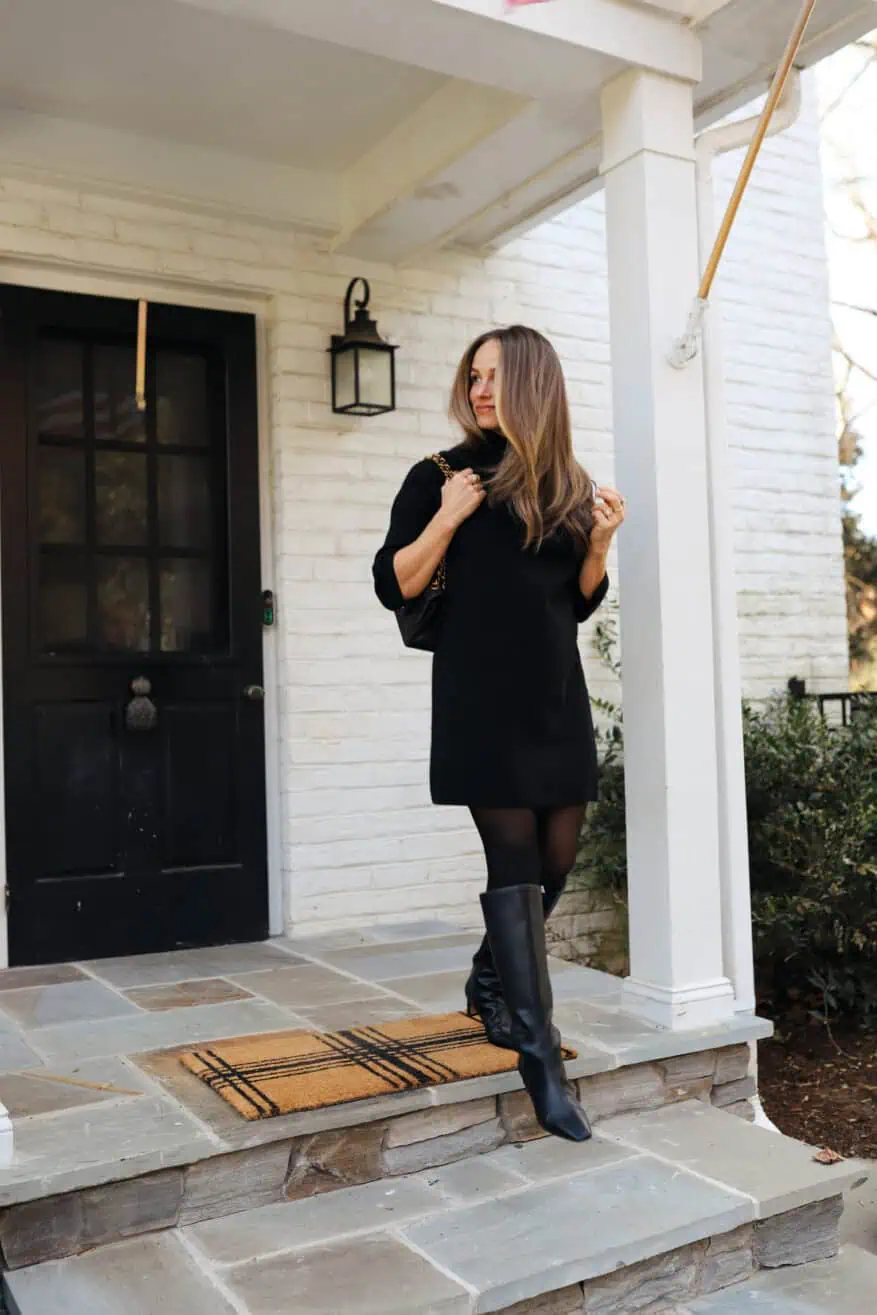A fitted turtleneck under a dress adds warmth, and can make your outfit look even more put together since layering always looks more intentional.