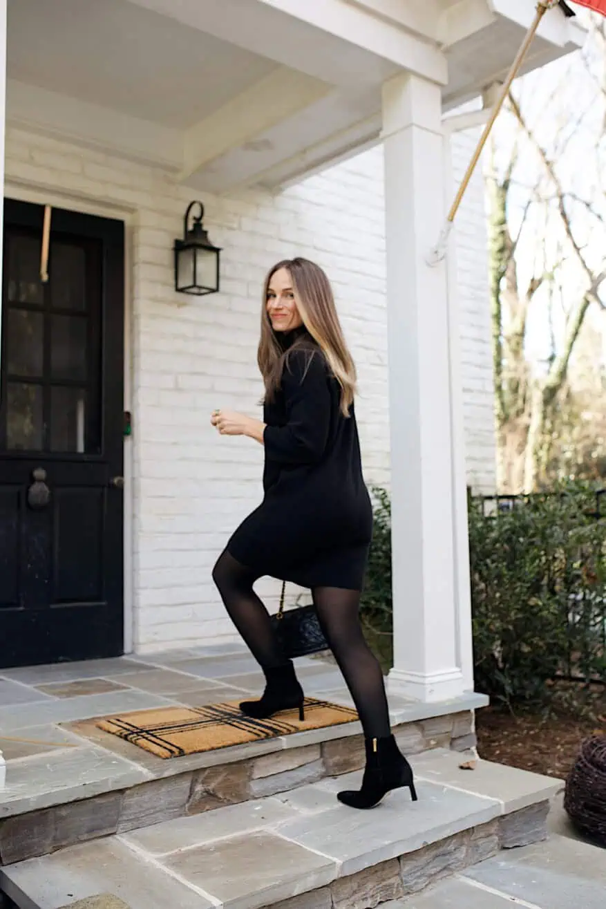Black, charcoal, or dark brown tights pair well with boots and coats, and make dresses feel like a practical choice, not a risky one. I get my tights from Nordstrom.