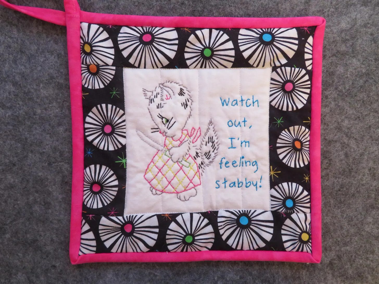 Your friend Karen is still making the hilarious potholders I refresh every year! STABBY KITTY! STAB STAB! (Irreverant Housewife)