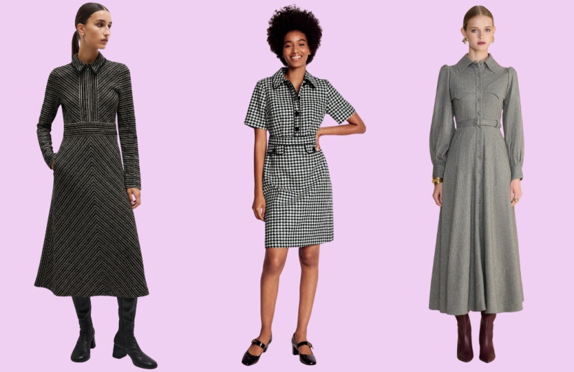 Or try one of these ‘RepliKates’. My favourite is the AM-PM midi in tweed from ME+EM (left, £250). The Boden Eda in houndstooth wool is a good option for those who like an above-knee length (centre, £95.40). The Ahana in Houndstooth from Beulah London is nice too (right, £895).
