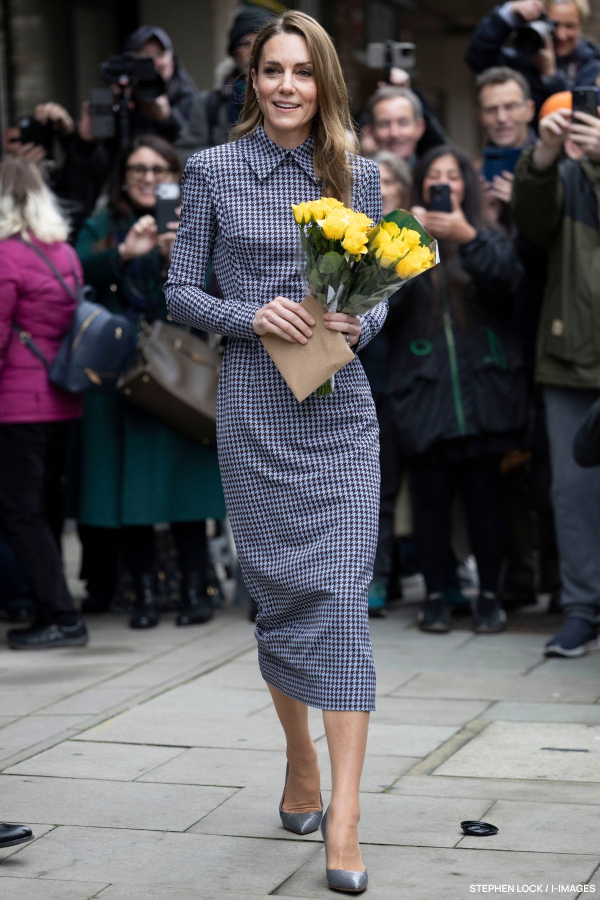 Though not a suit, the dress still sits within the tailored, boss-leaning aesthetic Kate favours for her work with her Centre for Early Childhood.