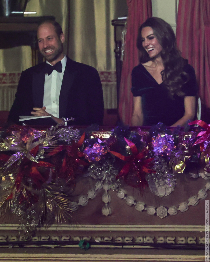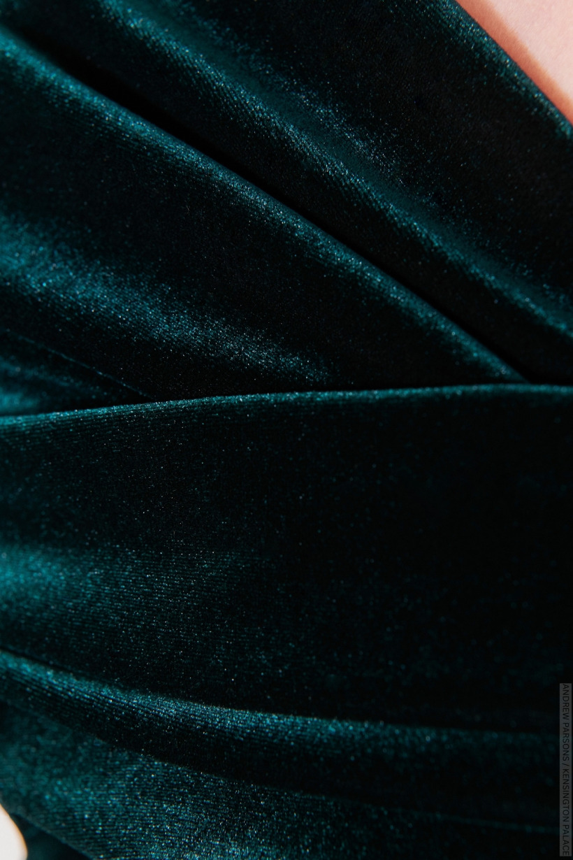 Kate Middleton chose a sumptuous, sculpted green velvet gown for Wednesday’s Royal Variety Performance.