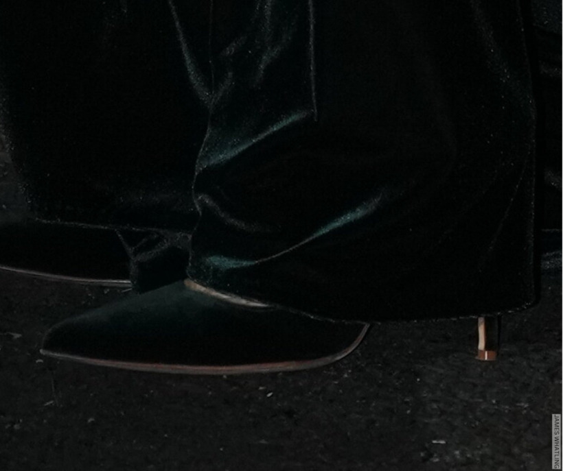 On to shoes now. It looks like Kate wore her Manolo Blahnik BB pumps in dark velvet green.