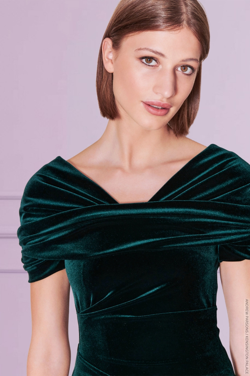 The dress, now listed on the company’s website as ‘Evening Dress Bobonne2‘ is described as a “long dress made of stretch velvet” in the colour ‘hunter green’. The price is listed as 1,698 Euro (around £1,493 GBP or $1,956 USD).