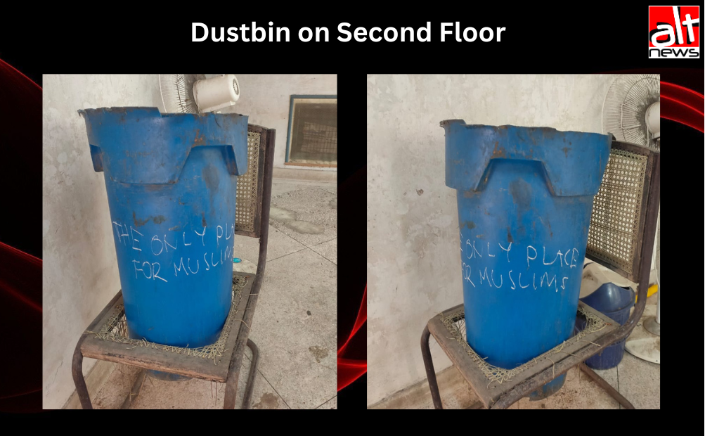 The words “the only place for Muslims” were found written on a dustbin kept on the north east corner of the second floor of the hostel.