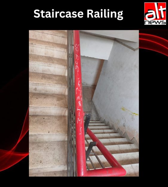 That’s not all. The railing of the hostel’s east-wing staircase was defaced with the words, “No Dogs and Muslims”.
