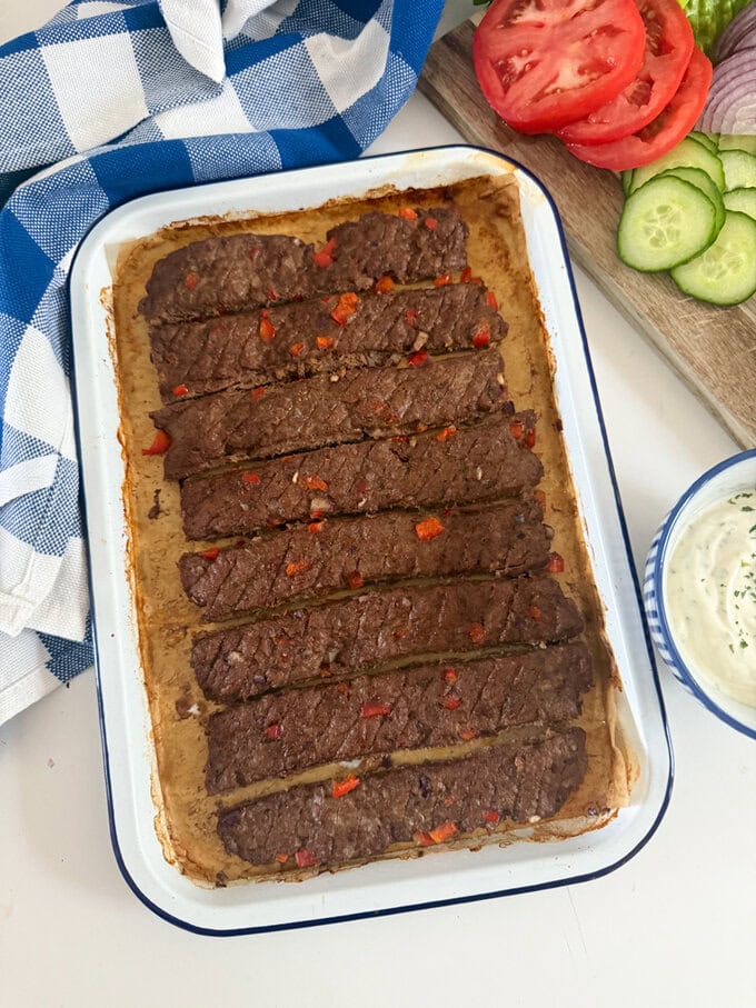 Bake in the oven for 12 minutes. The next step isn’t essential, but if you prefer a crispier top of the kofte then you can also put it under the grill for another 2 minutes.