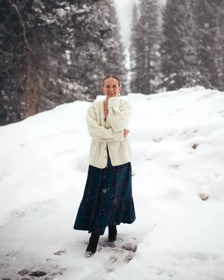 If you want a little glam for winter dress outfits, faux fur is the move. Short styles like this Apparis Fur Coat add a fun, vintage vibe, while long faux-fur coats like this one bring full-on elegance. Either way, they’re warm, cozy, and instantly make even the simplest knit dress feel special for the season.