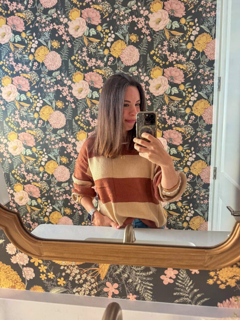The cooler weather has me so happy to pull out some light sweaters and long sleeve shirts. This lighter weight large stripe sweater and this blue green plaid are two of my current favorites. I also really love the loose jean (wide leg?) trend because it’s so comfortable.
