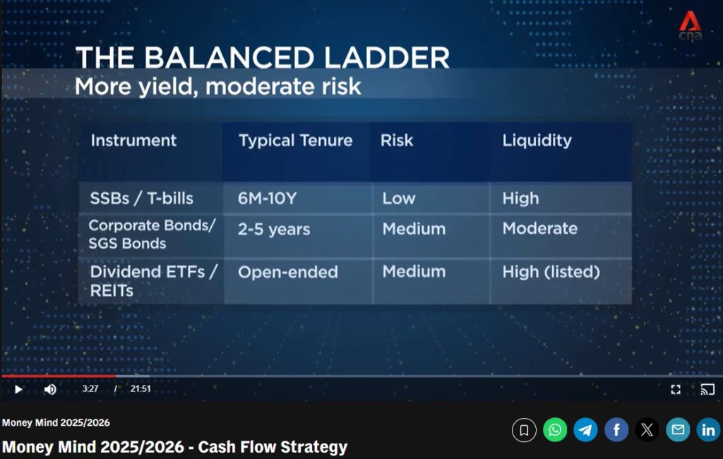 - Medium Risk (For Moderate Yield): Corporate Bonds (2-5 years) and SGS Bonds (Singapore Government Securities).