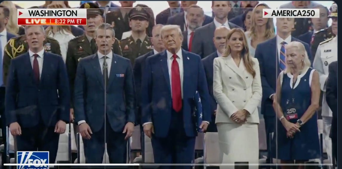 OK wait, actually our favorite part was Hegseth singing along with that shitty Lee Greenwood “proud to be an American” dogshit. He was doing it like he meant it, like this was a serious moment in his serious life, and it was as cringeworthy and stupid as the way he prays.