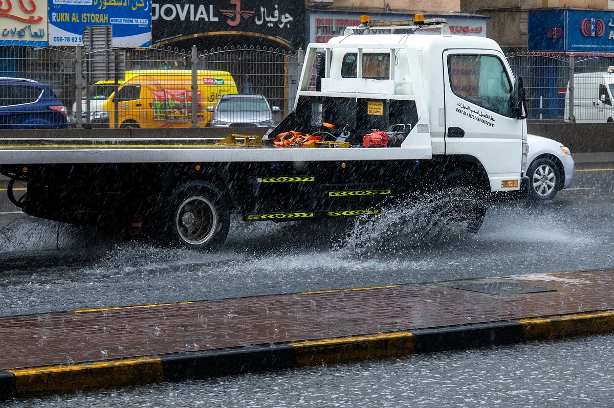 Recovery trucks were already seen getting to work in parts of the country after heavy rains led to waterlogged roads, with drivers on the lookout for vehicles affected by rain.