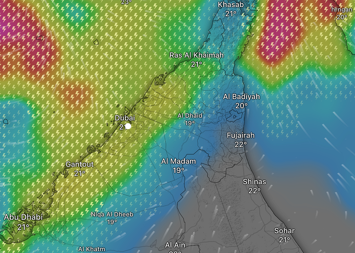 After midnight, the UAE is expected to see the first main wave of unstable weather affect Abu Dhabi and Dubai, bringing rainfall that could be heavy at times.