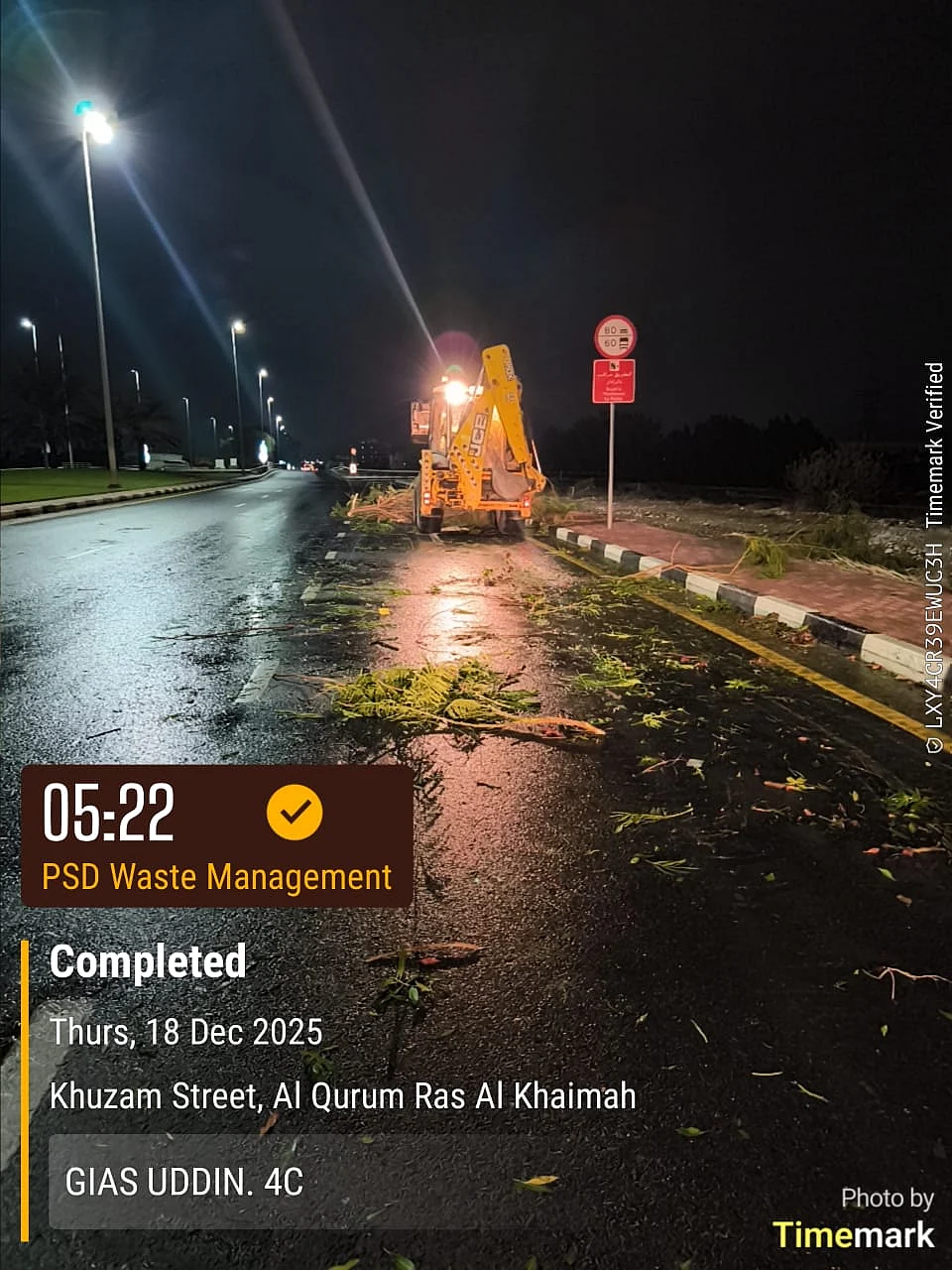From the early hours of this morning, RAK’s Public Services Department has been responding to public reports, such as fallen trees, damaged poles and similar incidents. Speaking to Khaleej Times, a department spokesperson said that its field teams are working around the clock at an accelerated pace to ensure service continuity and protect lives, property, and infrastructure.