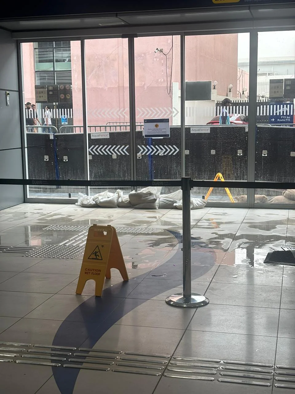 Rain control procedures were in place at Onpassive Metro Station in Dubai as unstable weather intensifies across the city.