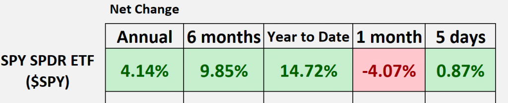 Hello again traders and welcome back to the Hot Stocks Outlook for August 25th, 2023. Hope y’all are having an excellent week out there in the financial markets. As always, we’ve got plenty to cover here in today’s Outlook, but if you haven’t already, make sure you go ahead and click on that link in the description below so you can sign up and get a live demonstration and learn more of the specifics about how all of these predictive tools can really help you make better trading decisions in the marketplace. So as we typically do, we can take a look at the SPY and really get a sense of the broader markets here via the SPY ETF. And over some of these given time periods, we can see going back 12 months, we’re only have about 4% now, year to date, just under 15.