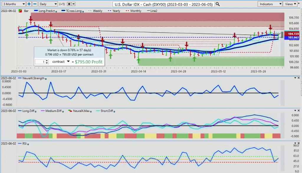 Hello everyone. Welcome back. My name is Greg Firman and this is the VantagePoint AI Market Outlook for the week of June the 5th, 2023. Now, to get started this week, we’ll begin with the dollar index.