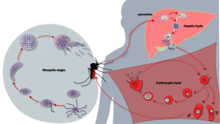 To date, more than 200 species of Plasmodium have been described, which cause malaria in a diverse range of vertebrate hosts. 5 strains are known to cause disease in humans. The parasites have a complex life-cycle, both within the mosquito vector, through which the disease is transmitted, and the human host.