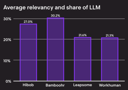 This sector was the cleanest example of search strength carrying straight through to AI authority, with brands like HiBob and BambooHR appearing exactly where you’d expect in LLM results based on their Share of Search.