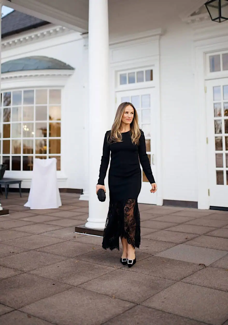• Add Texture – Lace, velvet, sequins, or a gorgeous satin material will take a simple black dress from simple to elegant and help dress up the look.