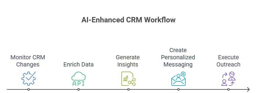 Enhanced workflows use AI to interpret CRM data changes within broader context. When a lead’s job title updates, the system doesn’t just fire off a congratulations email. It analyzes the career change implications, researches the new company’s marketing challenges, and crafts personalized outreach that provides immediate value.