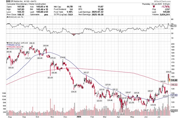 The nation’s biggest home builder DR Horton (DHI – NASDAQ) reported earnings last week. The stock was up more than 15% on the day, even though the results were anything but stellar.